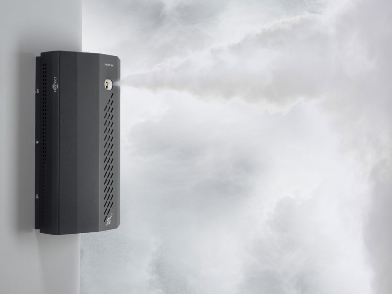 I nebbiogeni hanno trovato impiego negli ultimi anni come antifurto per impedire un furto o una rapina. Collegati ad un qualsiasi sistema di allarme entrano in funzione come una sirena ma, invece che emettere un suono, emettono una impenetrabile nebbia impedendo ad un ladro di vedere all‘interno dei locali protetti. Non esiste nessun modo per potere vedere attraverso la nebbia e quindi non è possibile aggirare le difese di un sistema nebbiogeno. La maggior parte dei furti dura non più di tre minuti, mentre il tempo medio di intervento delle forze dell‘ordine è normalmente superiore. Gli antifurti nebbiogeni generano una nebbia persistente, fino a 30 minuti, impedendo l’accesso ai ladri e qualsiasi conseguente contatto con i beni materiali all’interno dei locali.